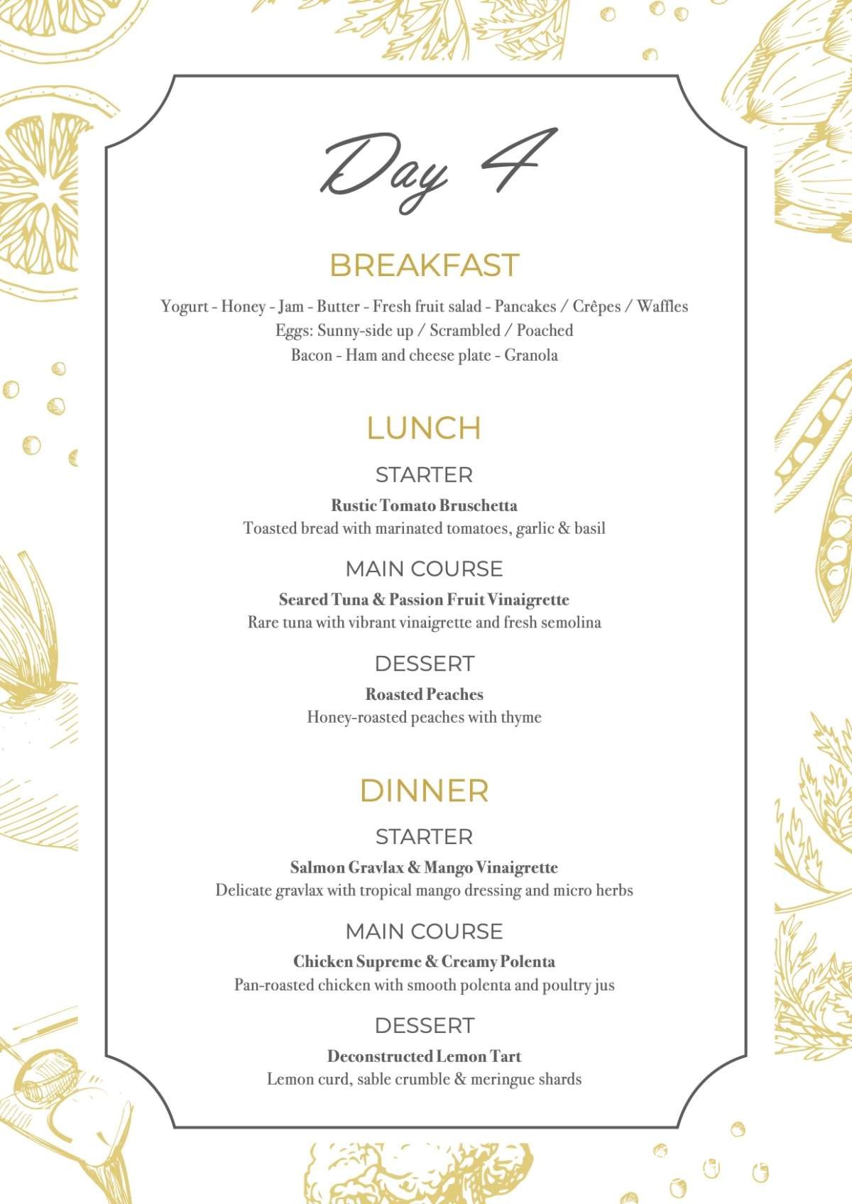 Warm, professional, and discreet, he is fully committed to enhancing the onboard experience with exceptional culinary artistry. Whether you're hosting a celebratory cruise or a quiet week at sea, Chef Jeremy ensures every meal is a memorable highlight of your charter.