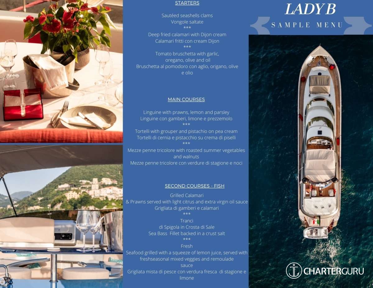 He has extensively crossed the eastern and western Mediterranean Sea and knows Mediterranean Sea very well and for this reason, he loves to make each charter unique, showing you the most recondite parts of the various landscapes. As captain, he is very proud to create tailor-made yacht cruising experiences for each charter. Fillippo has paid particular attention to the selection of the crew, according to the highest possible standards, he constantly takes care to details in order to ensure maximum comfort on board of the Lady B. He offers an enthusiasm that goes well with the positive attitude of the whole crew.