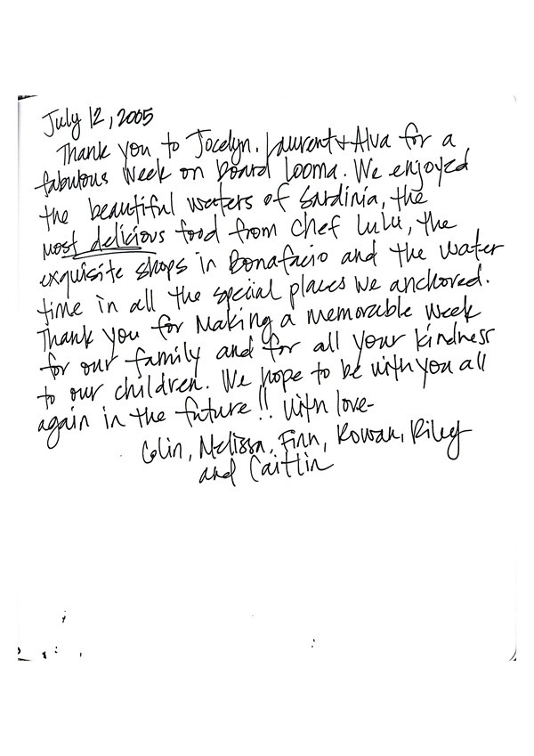 Thank you so very much for a very wonderful week aboard Looma yacht!