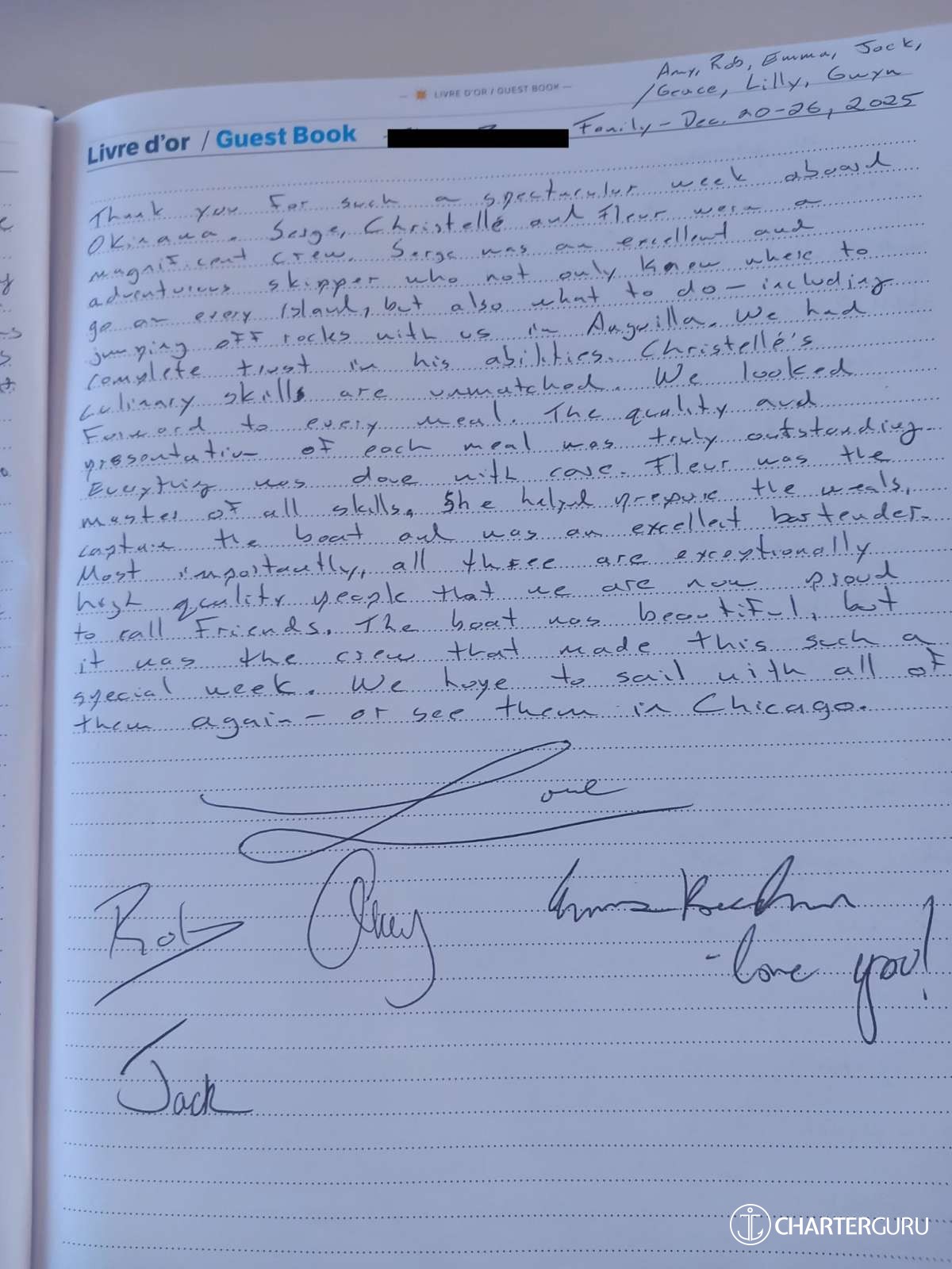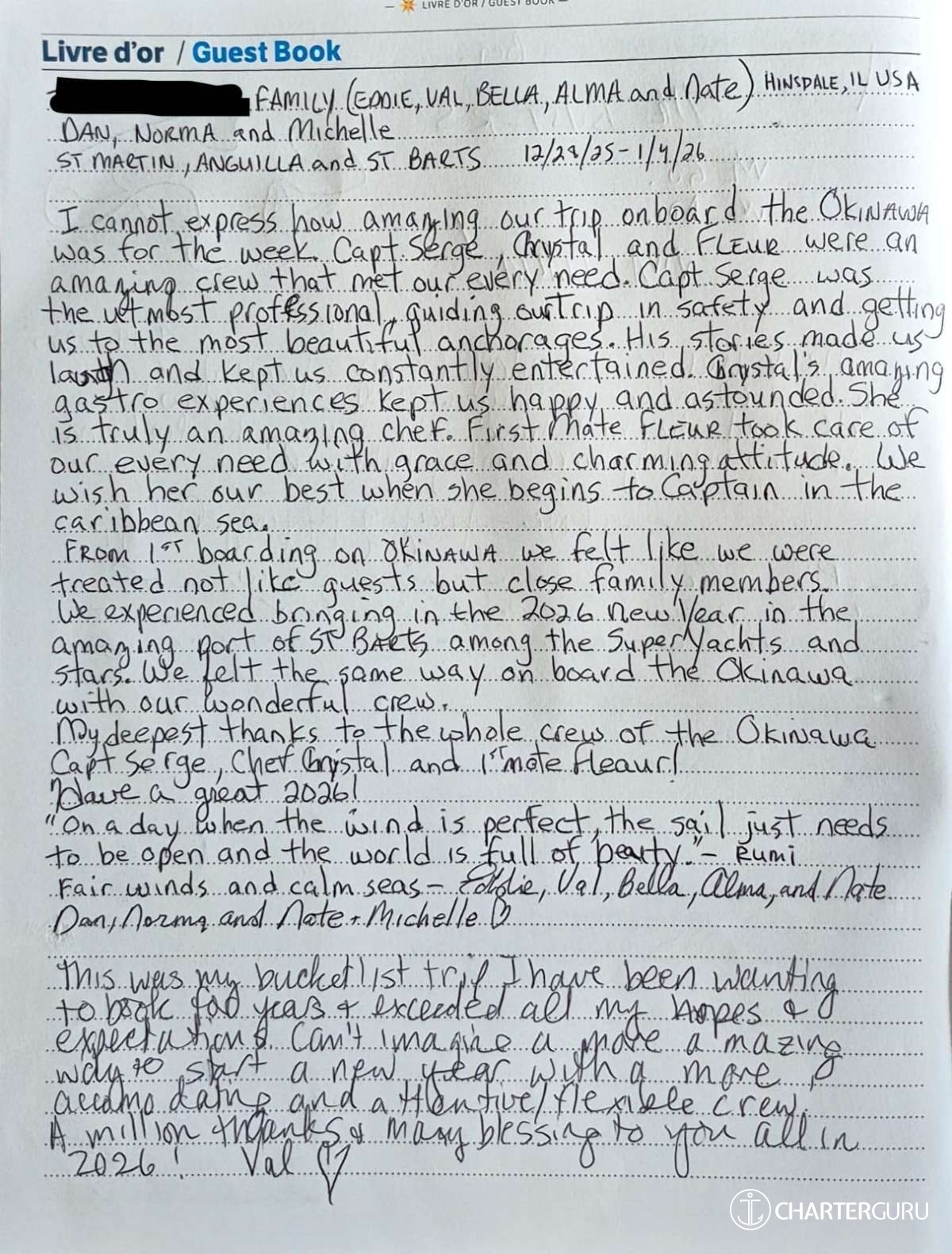 In any case, the crew did an excellent job, demonstrating great availability, especially considering the presence of two very young children on board, with special needs (bottle feeding, special lunches and dinners for the two-year-old, etc.).