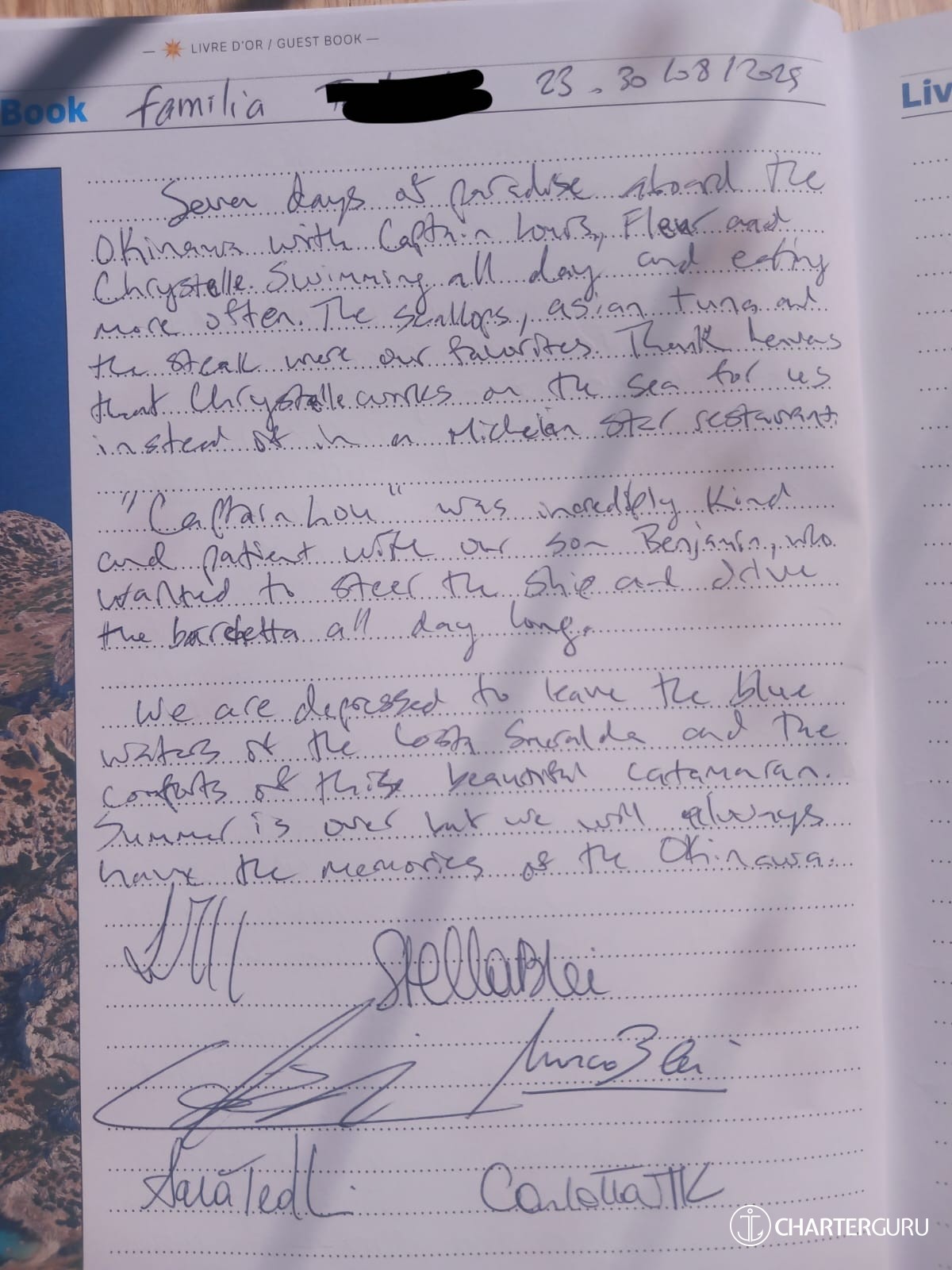 In any case, the crew did an excellent job, demonstrating great availability, especially considering the presence of two very young children on board, with special needs (bottle feeding, special lunches and dinners for the two-year-old, etc.).