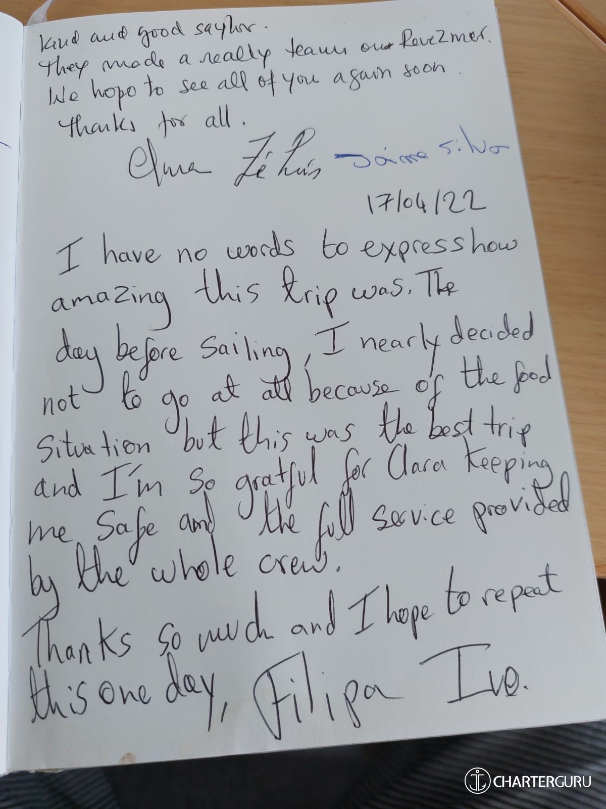 For a sailing catamaran like Reve2Mer, the expected APA is 20% to 35% of the charter price (€4,600 - €8,050), making the charter cost €27,600 to €31,050. Exact amount will be confirmed after inquiry.