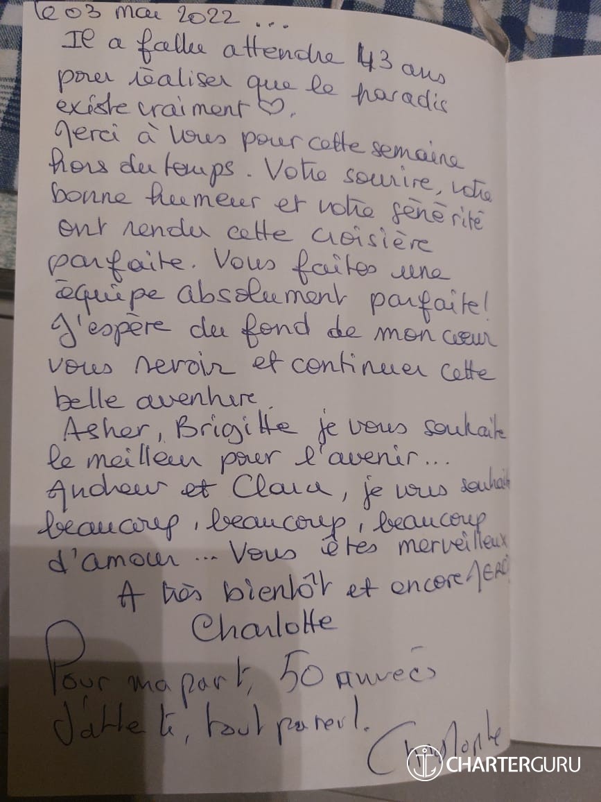 On board the Rêve2mer, you will be welcomed by a crew of 3 whose professionalism and finesse will make your cruise a unique adventure.