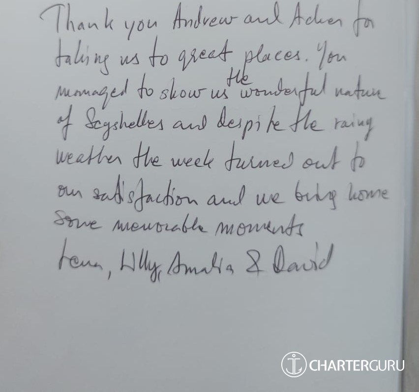 Fantastic beaches, extraordinary snorkelling, with Andrew and Asher always attentive and present to make our stay wonderful memories.