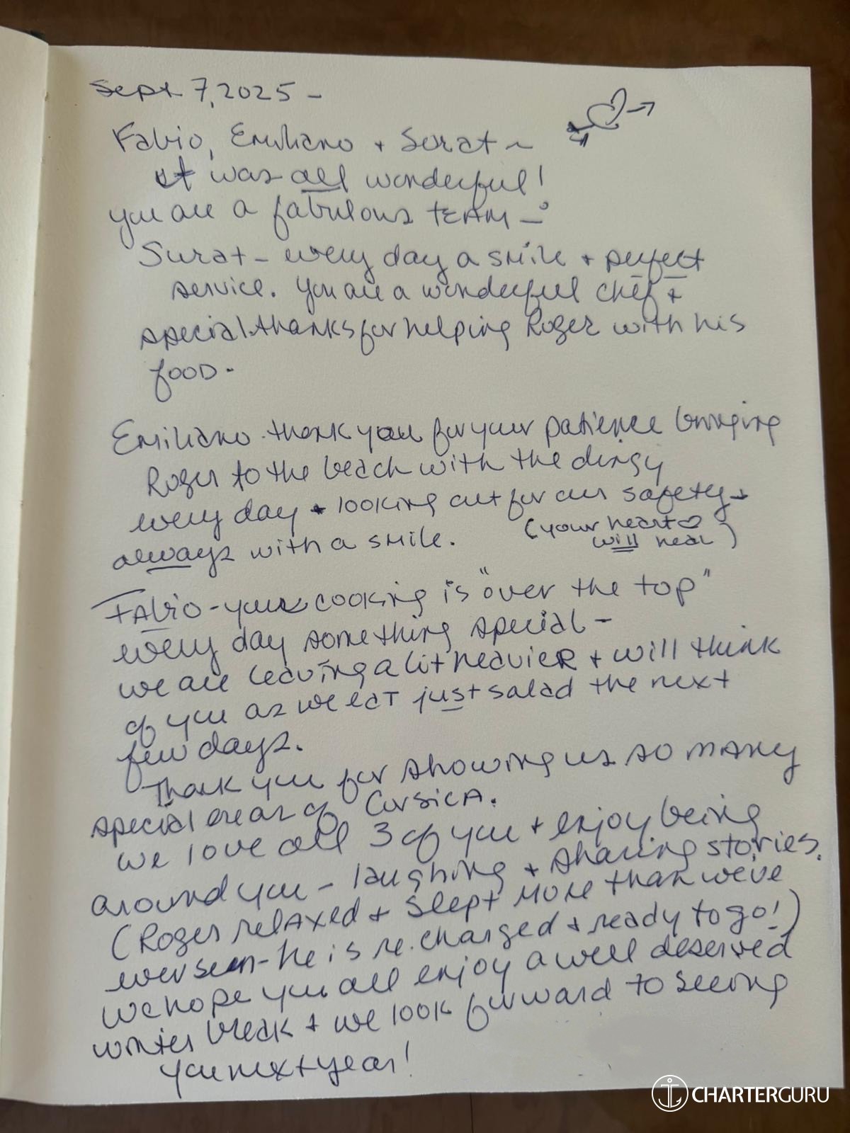 We had the best 10 days aboard Shangra, the crew was faultless and so friendly!