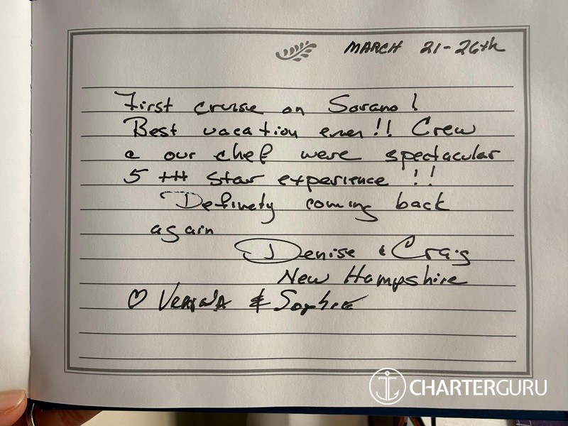 We can say this was an experience of a lifetime – our crew was spot on with everything – Hospitality at the best level – sailing / servicing / food. THANK YOU ALL ! WE WILL NEVER FORGET – NEXT STOP – FRANCE!