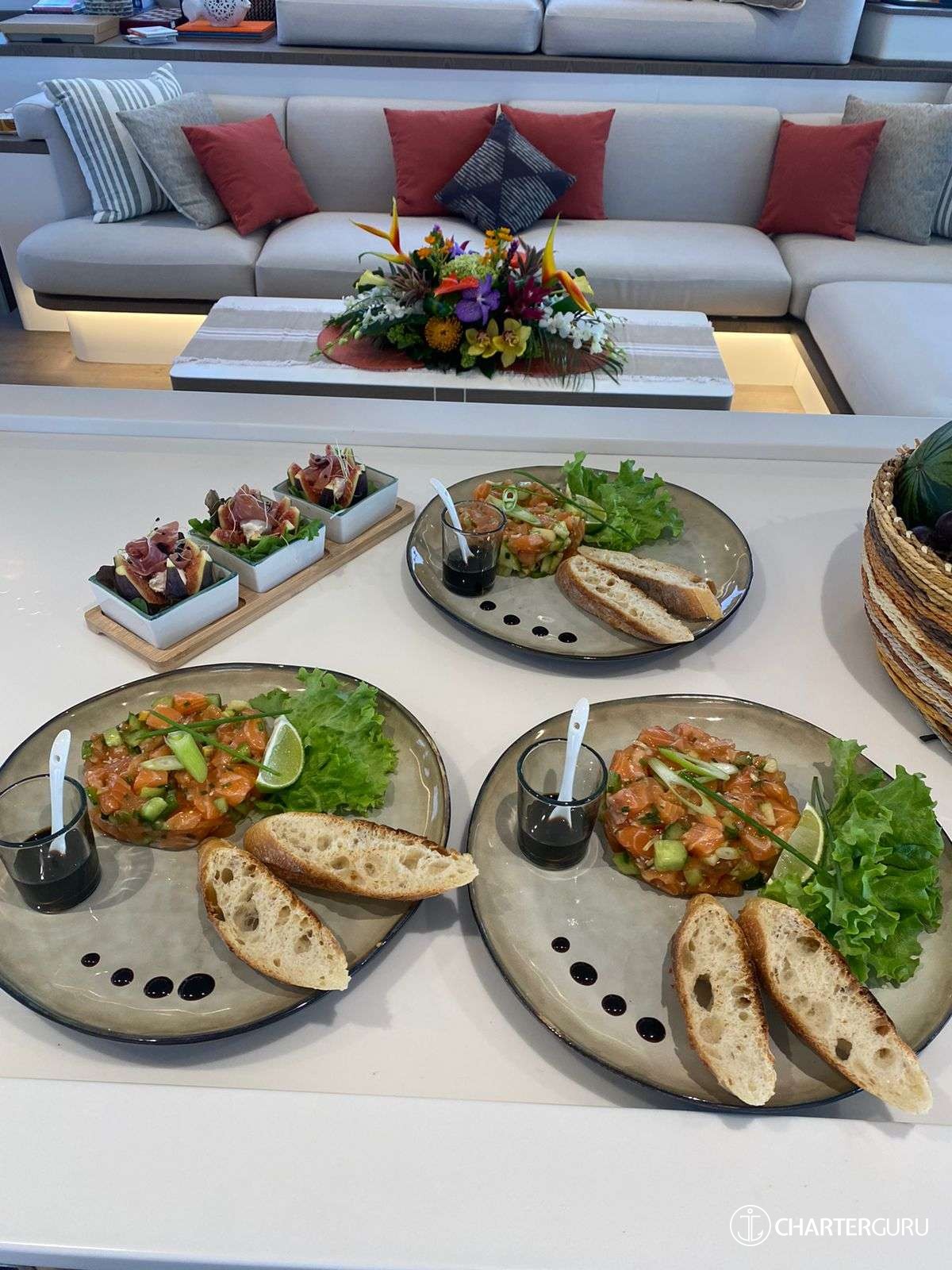 Conceived for the liveaboard lifestyle, the enormous salon provides a protected safety zone, with a lounge area to starboard and a gourmet galley to port.